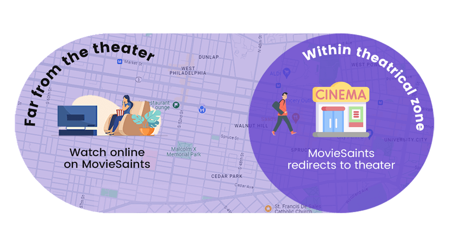 Maximize revenue by selectively offering online access outside theater zones, allowing simultaneous theatrical and online releases without impacting ticket sales.